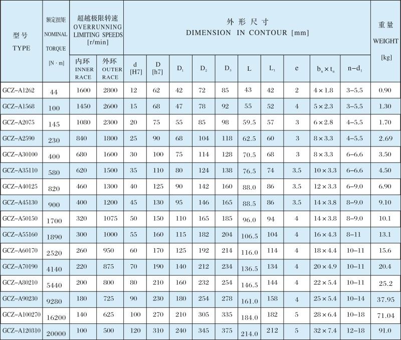 GCZ-A滾柱式單向離合器
